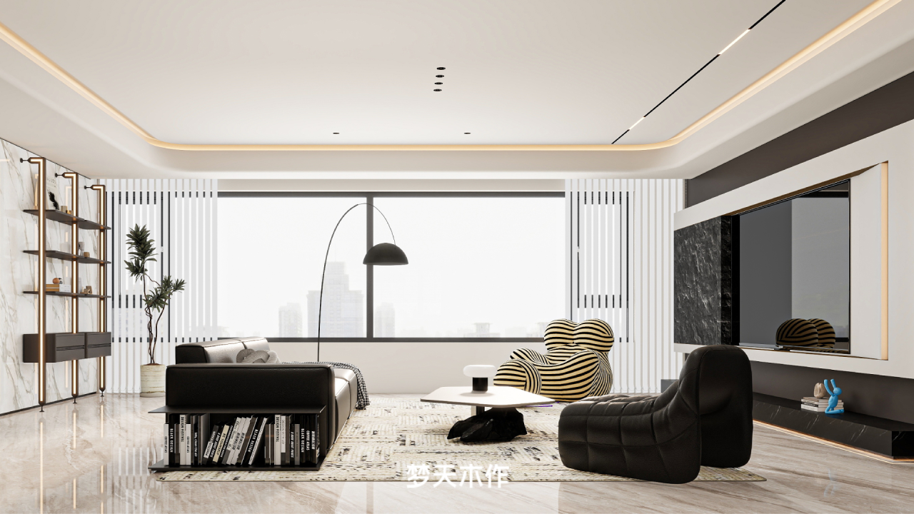 悬浮电视背景墙运用不同材质碰撞层次分明